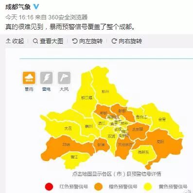◯ 成都暴雨刷屏朋友圈!川内18市州地灾预警