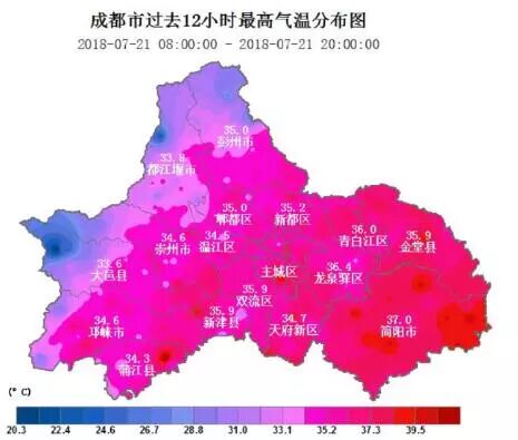 22日9时,成都市气象台发布第29号高温橙色预警信号如下:预计今天白天我市主城区、青白江和高新东区最高气温可达到35℃以上,请注意防暑降温。