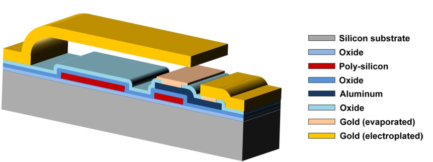 图 3:基于表面微加工工艺的 RF-MEMS 技术平台,用于制造用于多 GHz 应用的多态 RF 功率衰减器。(图片:自然科学报告)
