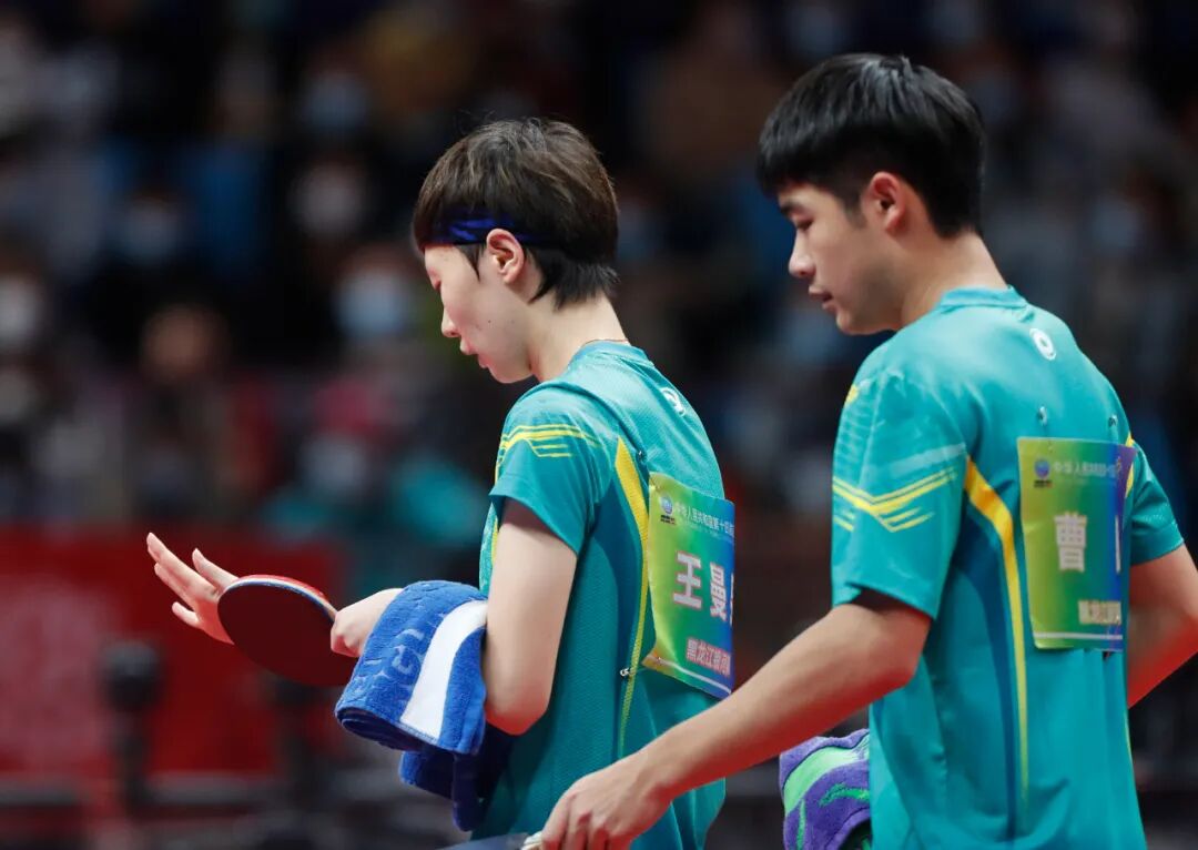 这场决赛也没有辜负大家的期待,过程中频频出现的高质量对抗、不停的比分反转,都无愧于本届全运会的最强混双之争。比赛前半程,许昕/刘诗雯率先发动连下两城。紧接着赛场上风云突变,曹巍/王曼昱加强火力在第三局3:3平后连得8分,成功扳回一城,第四局更是迂回曲折,许昕/刘诗雯在5:8落后的情况下将比分追平,曹巍/王曼昱再得一分后,许昕/刘诗雯抓住机会连得两分胜出,将领先局面扩大到3比1。