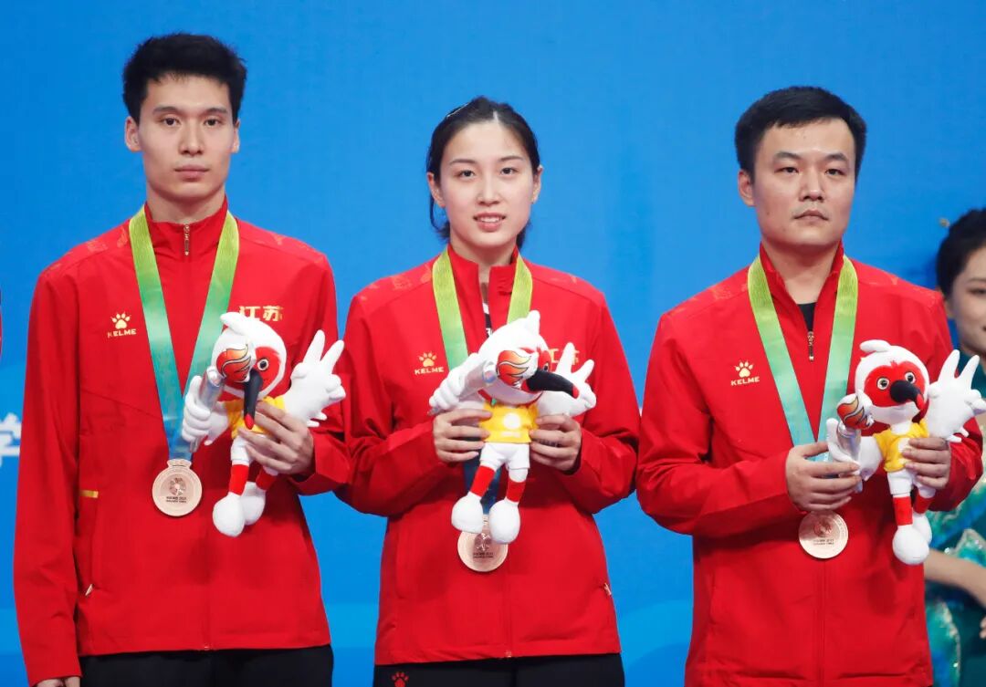 季军争夺战,江苏组合孙闻/钱天一3比2击败了林高远/黄頴琦,斩获混双铜牌。这场胜利来之不易,孙闻/钱天一在比赛中一直呈落后回追的状态,从0比1到1比1,再到1比2落后追成2比2,决胜局,孙闻/钱天一终于爆发,他们6:1开局后以10:5率先拿到铜牌点,林高远/黄頴琦追回两分后,江苏组合稳住心态,以11:7锁定胜利。这也是江苏乒乓球队自2005年十运会夺得男团冠军以来,再一次收获全运会乒乓球奖牌。