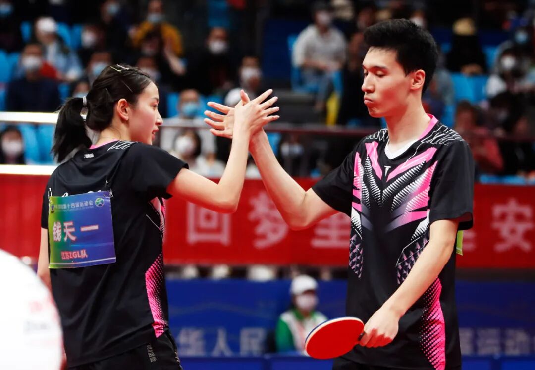 赛后孙闻颇为激动地说:“这也是江苏队的一个突破了,这么多年了全运会也没有拿过奖牌,之前没有和对手打过,比较陌生,比赛中钱天一给了我很大力量,这场球双方都很紧张,都看最后谁能多扛一板。”钱天一也对搭档不吝褒奖:“互相给力量!他在场上的那种拼劲儿也很感染我。”