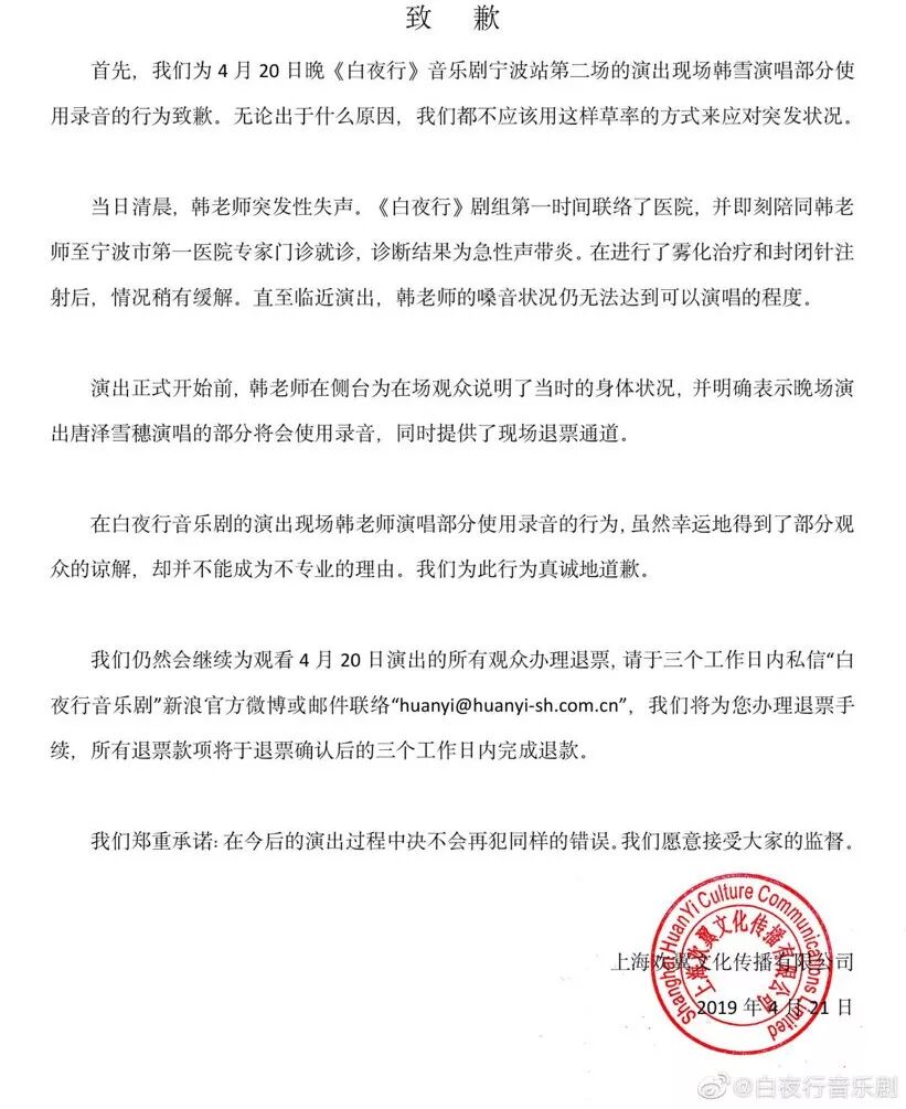 △《白夜行》主办方致歉声明