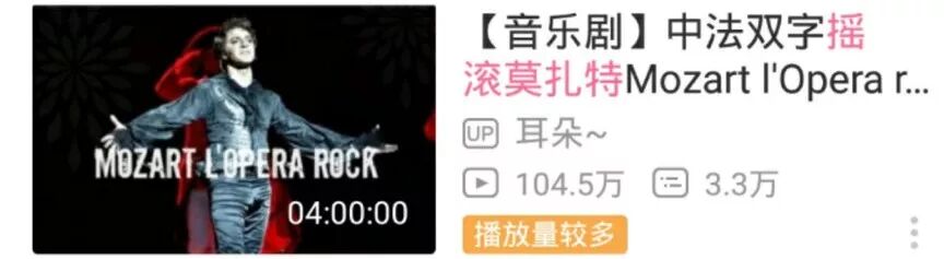 热门法语版音乐剧《摇滚莫扎特》(简称“法扎”)从2009年问世以来,在今年开启了第十年的巡演。该剧目的引进方表示,法扎在B站上庞大的粉丝基础是引进这部剧的最初原因。B站上目前播放量最高的一个视频达到了104万。