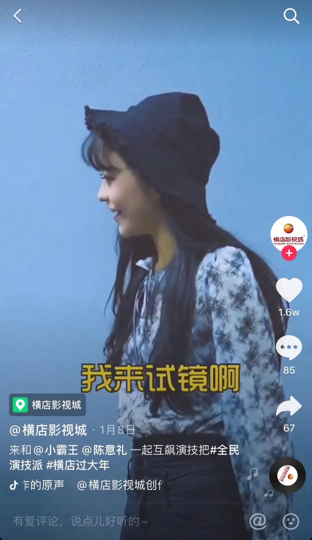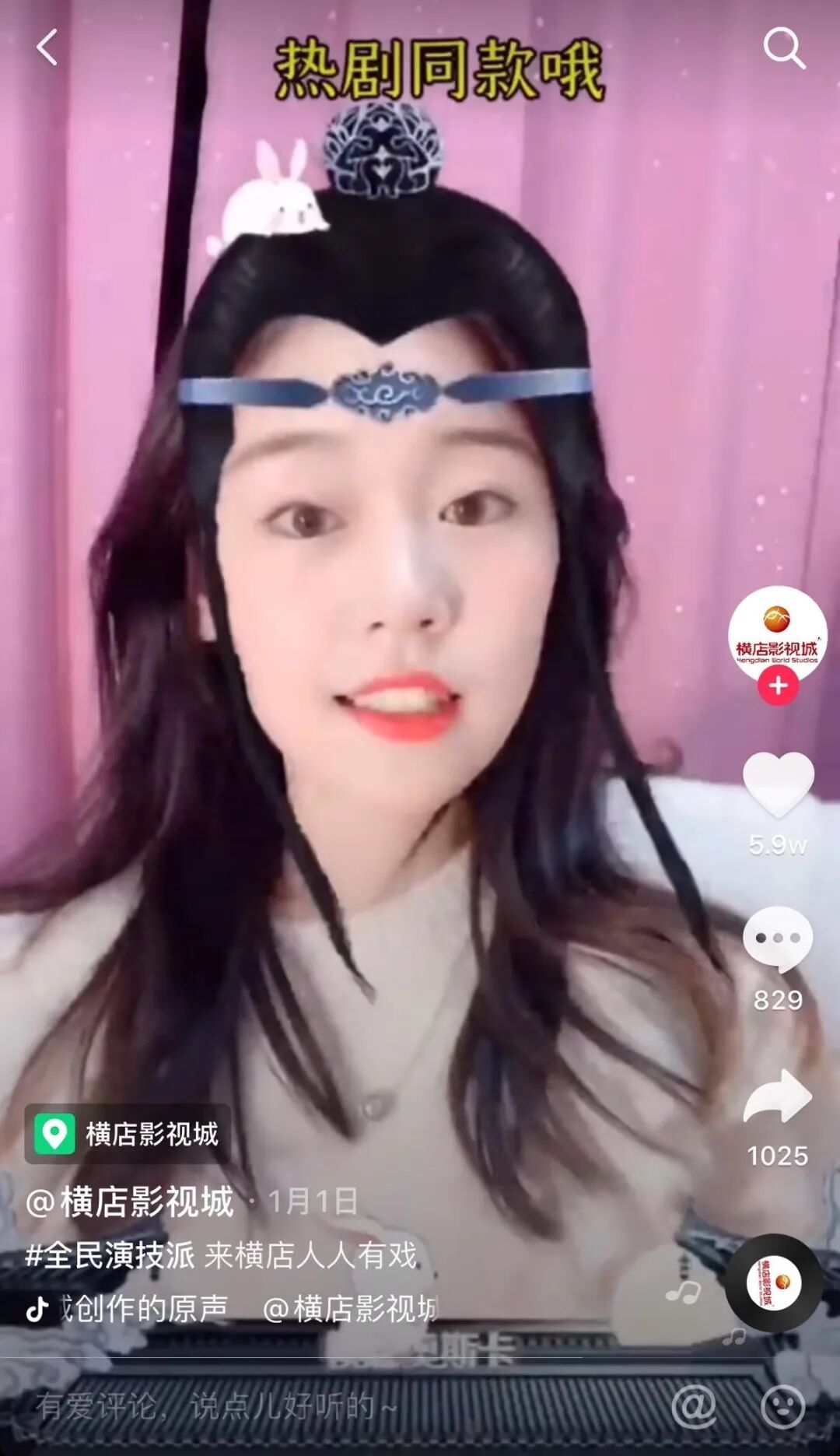 今年年初,浙江省横店影视城在抖音发起#全民演技派挑战赛,并为挑战赛定制含有热门影视剧元素的创意贴纸。目前该话题的播放量已达28.5亿次。