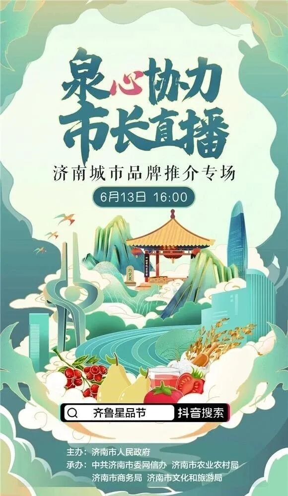 因此,“官方下场宣传”已然成为未来趋势,抖音更成为了首选渠道。2020年6月,由济南市领导及各区县的区县长们组成的“带货第一团”开启了“泉心协力·市长直播”城市品牌专场推介。在抖音直播间,他们和带货达人一起,畅聊济南人文风情,现场试用特色产品,宣传推介济南各区的人文资源、好品、好物。