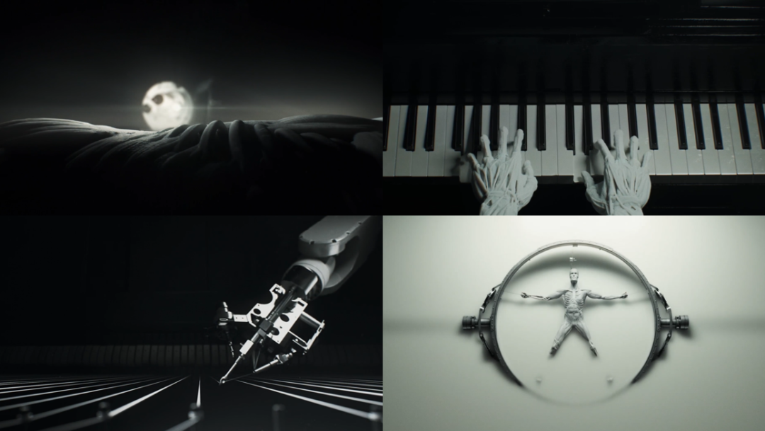 概念美学派前面的几种类型,在设计与取材上,仍然离不开剧中场景、人物、道具、台词等客观元素。但设计人员对于剧集本身的认识、理解与审美理念,才是片头中的灵魂和精华。一个高度概念化、审美化、哲学化的片头,能够更好地起到召唤和审美功能,甚至成为一个独立的艺术品。最典型的代表就是《西部世界》。设计师帕特里克从剧中提炼出极简而有象征性的意象,赋予其极致的精神概念。第一个镜头你乍看以为是太阳从山脊升起,而后才惊觉这其实是一组光束正在勾勒机器人胸腔。每个意象都有着双重解读的空间,从完美洁净的赛博朋克到飞沙走石的西部文化,彰显出剧集主旨的张力。