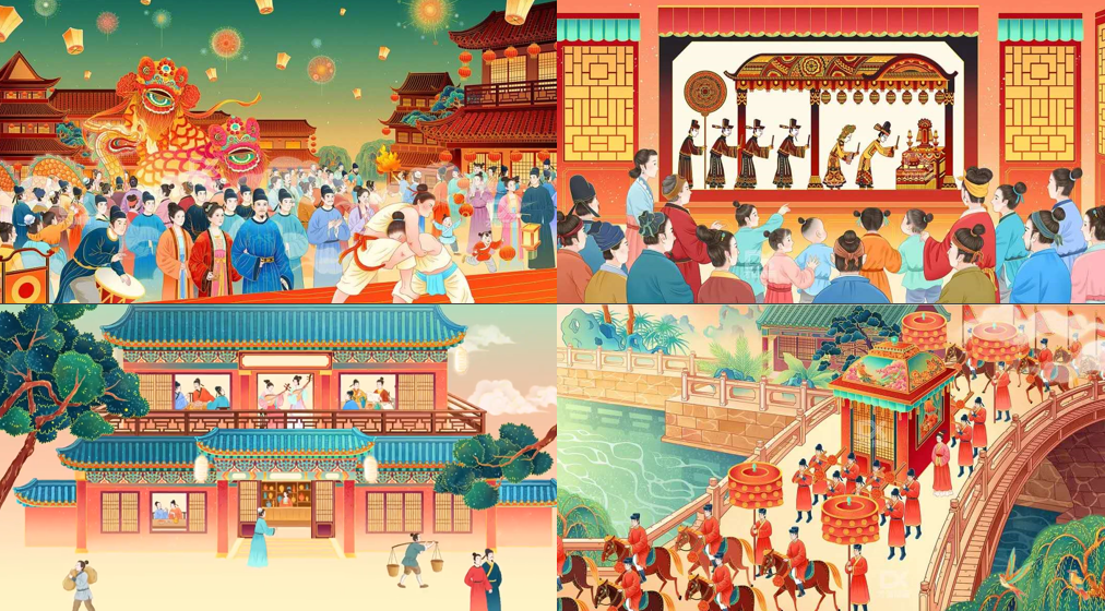 宫廷剧《清平乐》通过饱满的色彩和国风写意的绘画风格来描绘繁华俏丽的勾栏、风起云涌的朝堂、风物别致的民俗。随着“移步换景”,观众也逐渐进入到剧集之中,去领略宋仁宗盛情与遗憾的一生。