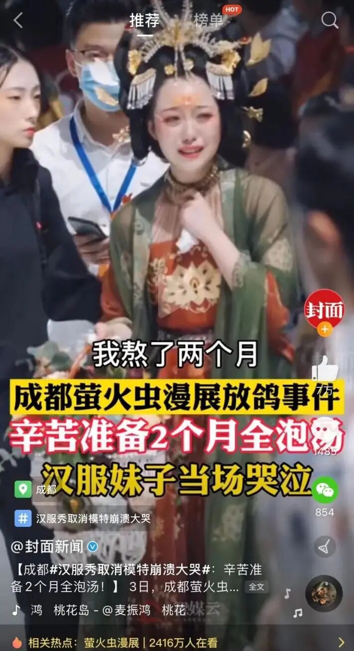 比如去年负面声量出圈的华裳九州联合萤火虫漫展成都站汉服大秀,活动安排出现重大失误,模特无法排练,参与者临时被告知走秀时间大幅度压缩,导致大批商家模特现场抗议,与主办方发生激烈言语冲突。事后舆论谴责与公关危机也集中于两个活动主办方,关注点与活动场地基本无关。