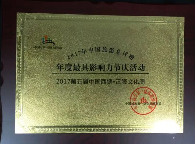 第五届西塘汉服文化周也获得了2017中国旅游总评榜颁奖典礼“年度最具影响力节庆活动”。