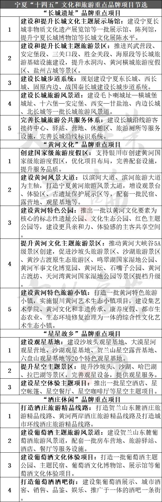 河北省文化和旅游发展“十四五”规划明确,未来五年,河北省将重点聚合“京畿福地,乐享河北”总品牌,搭建旅发大会、产业投融资、文化和旅游云等三大平台,形成长城(大运河)国家文化公园建设工程、文化和旅游科技创新“四个一”工程、优势文化产业集群打造工程、优质旅游产品供给工程等十项重点工程。并围绕重点工作和重点工程,打造百强项目。