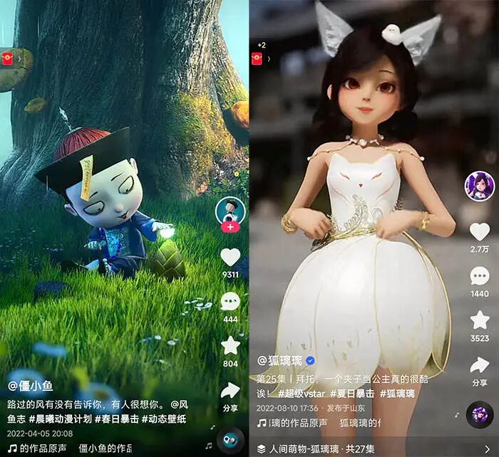 虚拟娱乐主播和二次元虚拟偶像很类似,不过前者对标的是PDD、冯提莫等娱乐主播,后者对标的则是杨超越、刘宇等流量偶像,且虚拟娱乐主播并不局限于二次元和Z时代。从商业模式讲,虚拟娱乐主播公司更像是娱乐公会,本质上赚的是逗人开心的钱。许安一、金桔2049、居居、狐璃璃是目前比较火的虚拟娱乐主播。△图源:抖音