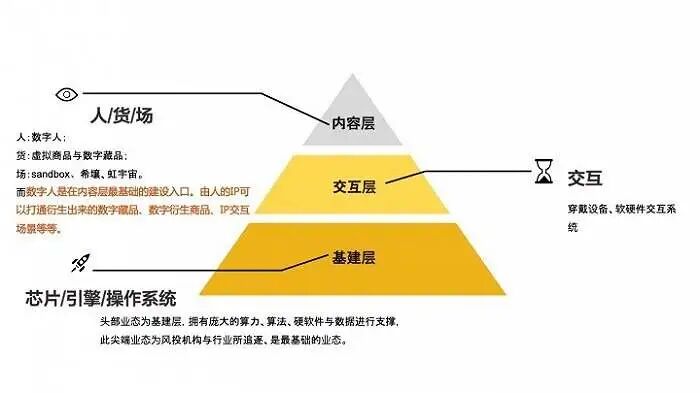 量子匠星创始人王博轩认为,虚拟人行业可以分为三层,第一层是由芯片、引擎、操作系统组成的基建层,第二层是由穿戴设备、软硬件交互系统组成的交互层,第三层则是由虚拟人等载体组成的内容层。