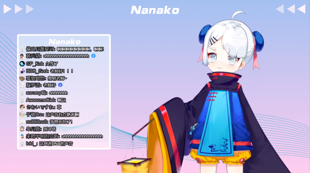 二次元虚拟偶像的常见玩法是通过直播聊天、舞台表演等方式赚取粉丝打赏。虚拟偶像MCN魔女公司Project的创始人乐府在接受“蓝鲸浑水”采访时表示,其公司每月流水150万元-200万元左右,一半以上来自直播打赏,另一部分来自原创音乐和IP周边。二次元虚拟偶像切的是二次元市场的蛋糕,带有强烈的圈层属性,所以B站是目前国内最大的二次元虚拟偶像平台。B站董事长陈睿曾在12周年庆上透露,过去一年共有32412名虚拟主播在B站开播。△演员蔡明在B站化身“菜菜子Nanako”,以虚拟主播的形式进行直播。图源:网络