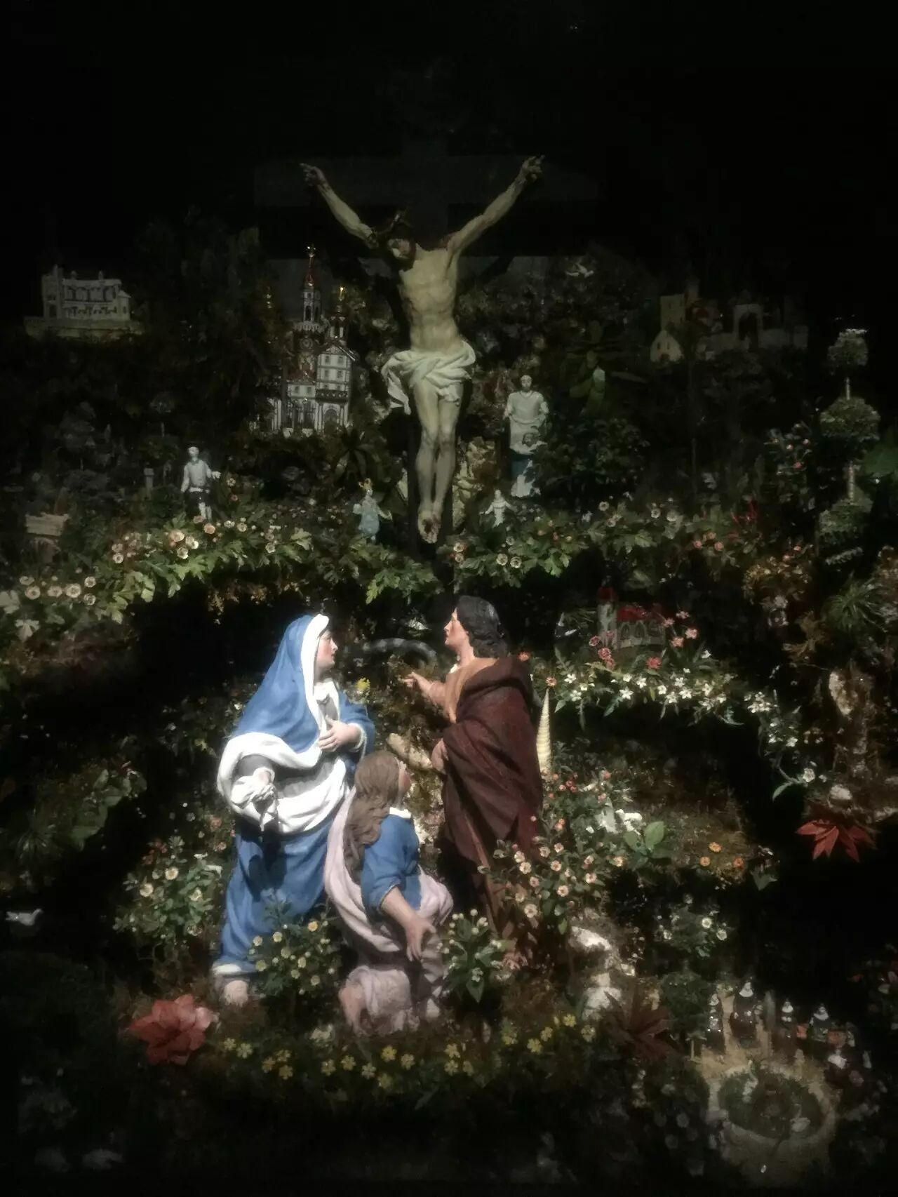 欧洲教堂与虔诚教徒家中常见的宗教题材模型,高处似为背景的耶稣俯瞰众生呈现稳定的三角线构图,在同类题材的作品中作为永恒的主角存在着