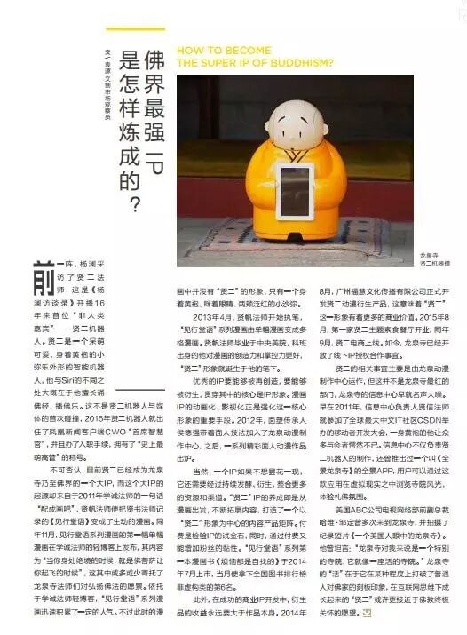 前一阵,杨澜采访了贤二法师,这是《杨澜访谈录》开播16年来首位“非人类嘉宾”—贤二机器人。贤二是一个呆萌可爱、身着黄袍的小弥乐外形的智能机器人,他与Siri的不同之处大概在于他擅长诵佛经、播佛乐。这不是贤二机器人与媒体的首次碰撞,2016年贤二机器人就出任了凤凰新闻客户端CWO“首席智慧官”,并且办了入职手续,拥有了“史上最萌高管”的称号。