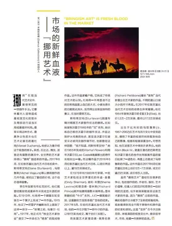 “挪用”在现当代艺术史中,是很常见的一项创作手法。它意味着对人造物品或是视觉文化的整体及局部进行适当采用或是循环利用。最早采用这种方式、最具争议性后来也在艺术史留名的是杜尚(Marcel Duchamp)。他被认为是介绍这个观念的推手。其后,在达达、偶发、波普还有摄影的潮流中,全世界的艺术家持续以“挪用”创造新的作品。2017年6月,在伦敦苏富比当代艺术日场拍卖中,斯特蒂文特(Elaine Sturtevant)、马耶鲁斯(Michel Majeurs)等以挪用创作的几件作品,都拍出了翻倍的价格,这个动态值得留意。