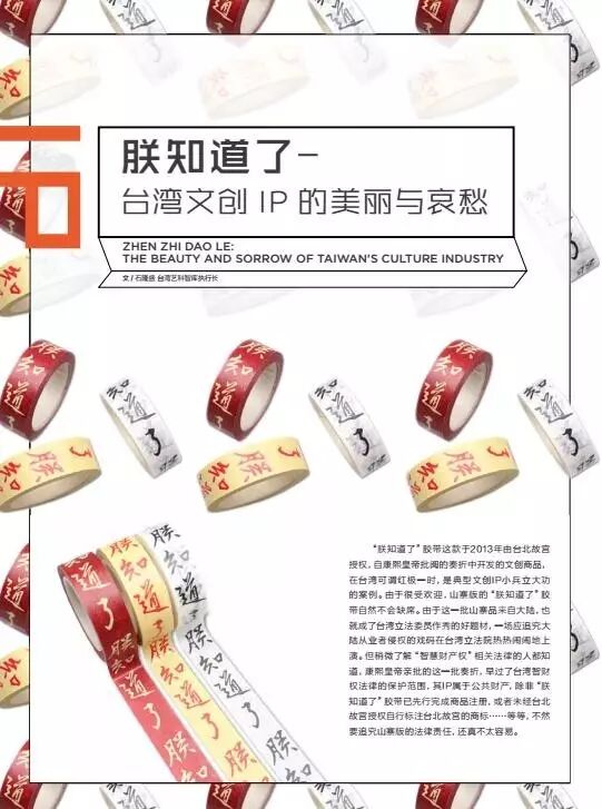 “朕知道了”胶带这款于2013年由台北故宫授权,自康熙皇帝批阅的奏折中开发的文创商品,在台湾可谓红极一时,是典型文创IP小兵立大功的案例。由于很受欢迎,山寨版的“朕知道了”胶带自然不会缺席。由于这一批山寨品来自大陆,也就成了台湾立法委员作秀的好题材,一场应追究大陆从业者侵权的戏码在台湾立法院热热闹闹地上演。但稍微了解“智慧财产权”相关法律的人都知道,康熙皇帝亲批的这一批奏折,早过了台湾智财权法律的保护范围,其IP属于公共财产,除非“朕知道了”胶带已先行完成商品注册,或者未经台北故宫授权自行标注台北故宫的商标……等等,不然要追究山寨版的法律责任,还真不太容易。