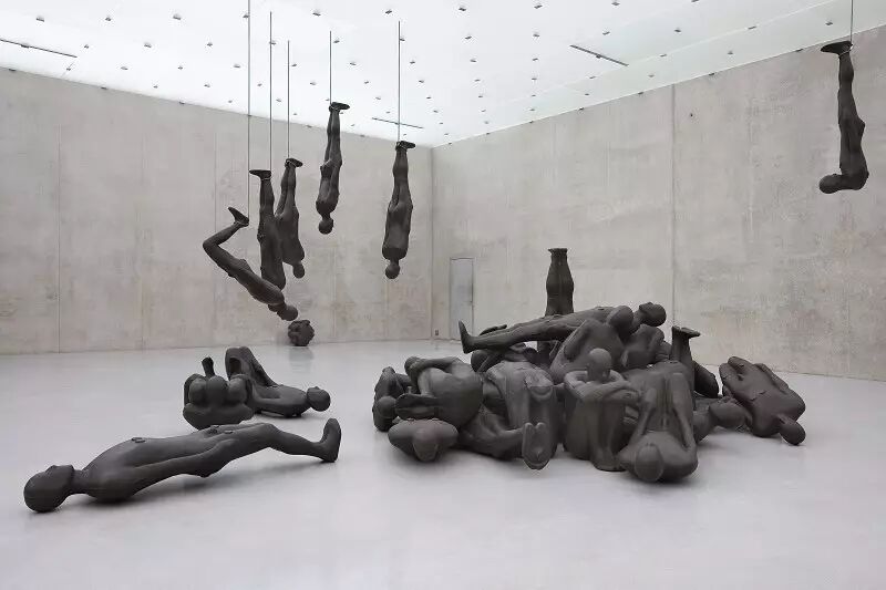 核心作品《临界物质II》(1995)是一件由60个真人大小的铸铁人体组成的装置作品,部分人形雕塑排列成直线型,另一部分以一种坠落的姿态悬置于空间当中,还有一些散乱地分置于空间各处或者混乱地倒成一堆。