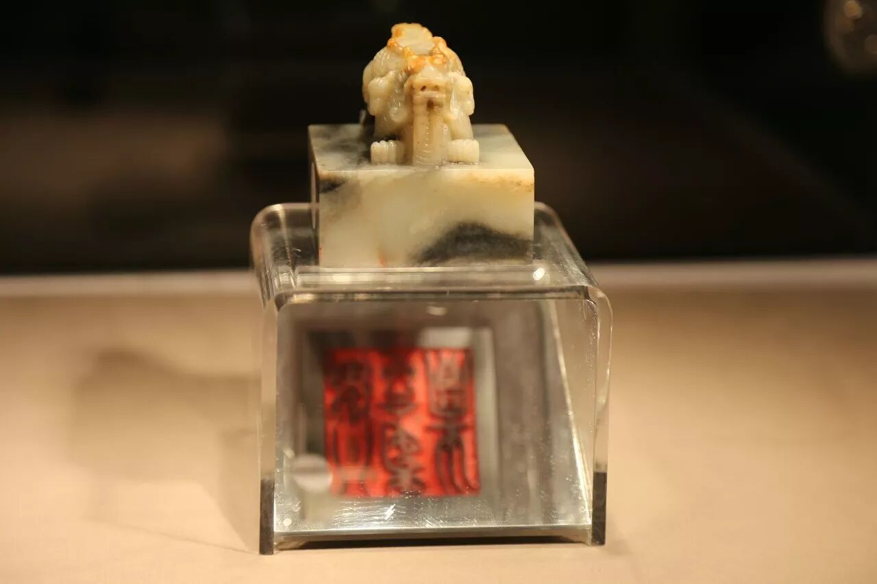 此宝的印钮雕刻十分细腻,体量虽不大,但交龙钮的细部雕制一丝不苟,体现出乾隆玉雕的风神和韵致。尤其是龙角和背鳍部分利用天然的红色玉皮雕刻,与其它部分形成较强的反差,颇具匠心。此宝制作完成后,经常作为乾隆皇帝鉴赏的标志钤盖于宫廷收藏的古代书画之上,实例如北京故宫博物院藏宋代米芾《行书拜中岳命诗帖卷》前隔水上钤盖「五福五代堂宝」、「八征耄念之宝」、「太上皇帝」(图一);唐代无名氏《楷书古今译经图记》后隔水上钤盖「五福五代堂宝」、「八征耄念之宝」、「太上皇帝之宝」,其中的「八征耄念之宝」即为此宝(图二)。