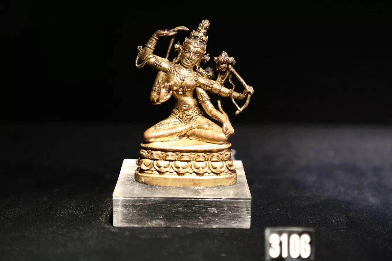 明宣德鎏金铜四面八臂金刚瑜伽女立像