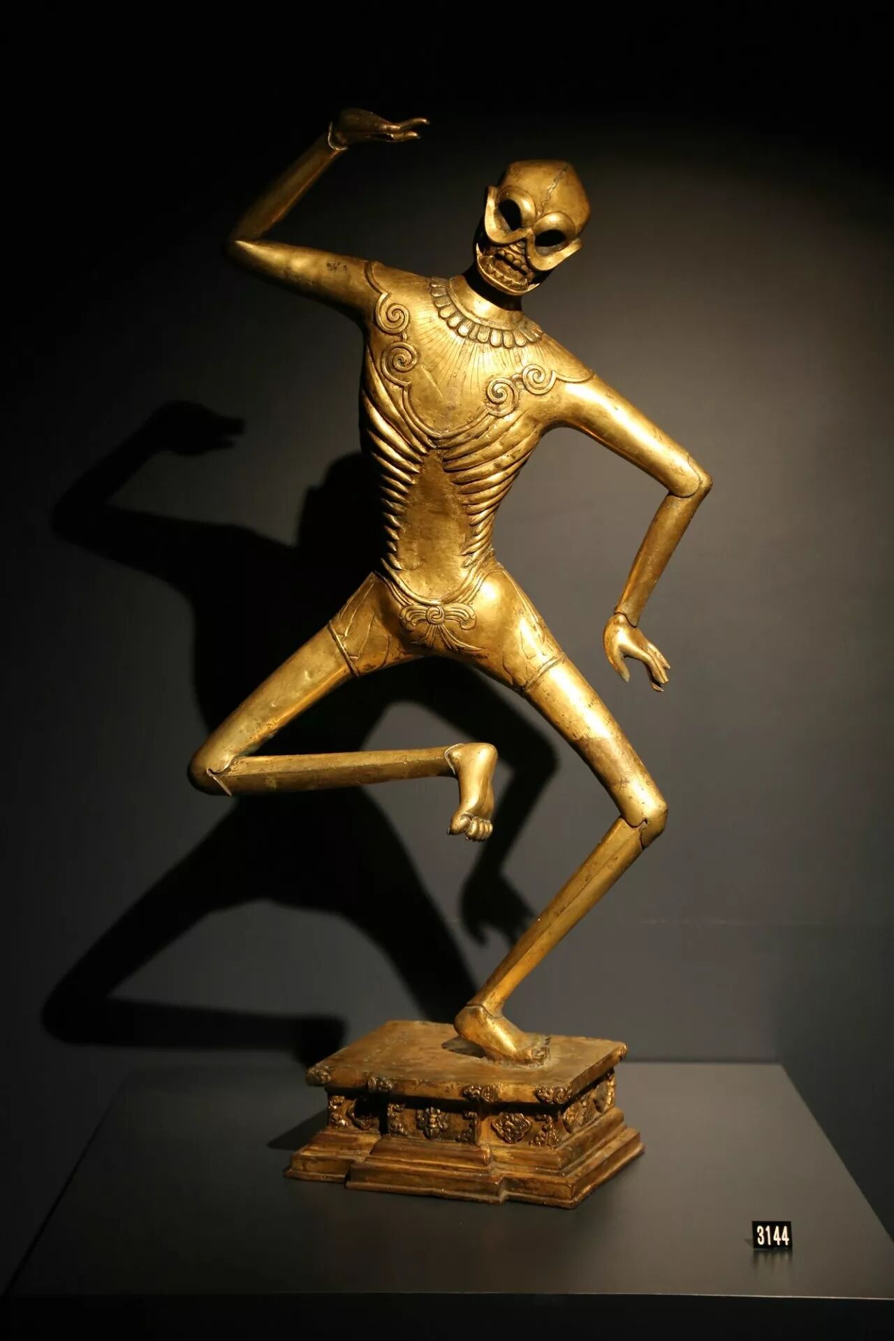 金刚瑜伽女是藏传佛教极为重要的女性神祇,她是胜乐轮金刚密续的根本核心。此宣德铜像罕见精美,金刚瑜伽女以舞立姿之身形踩在一代表胜乐轮金刚之新月上,双手握持着胜乐金刚的重要法器金刚铃与金刚杵,分别象征智慧与慈悲,两者的结合是密宗坦特罗的核心思想。