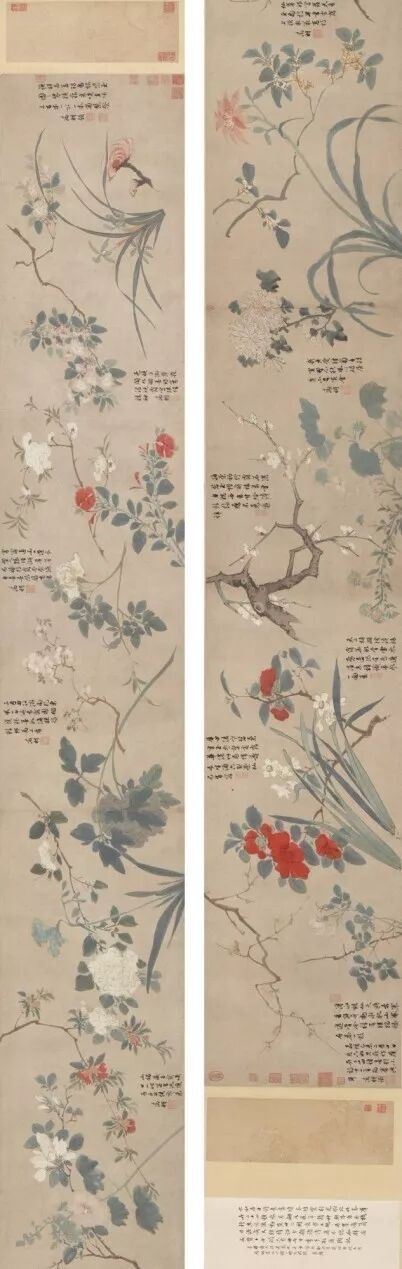 唐寅绘、文徵明题《群卉图卷》,设色纸本,手卷,32 x 378.5 公分
