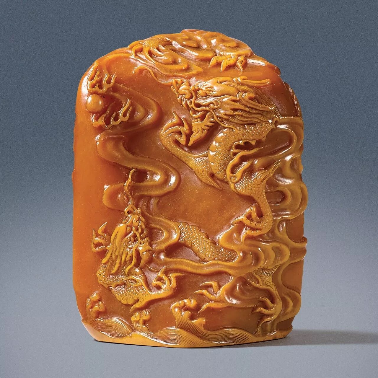 清康熙田黄巧作双龙戏珠纹印章《佶》、《吉人》款,