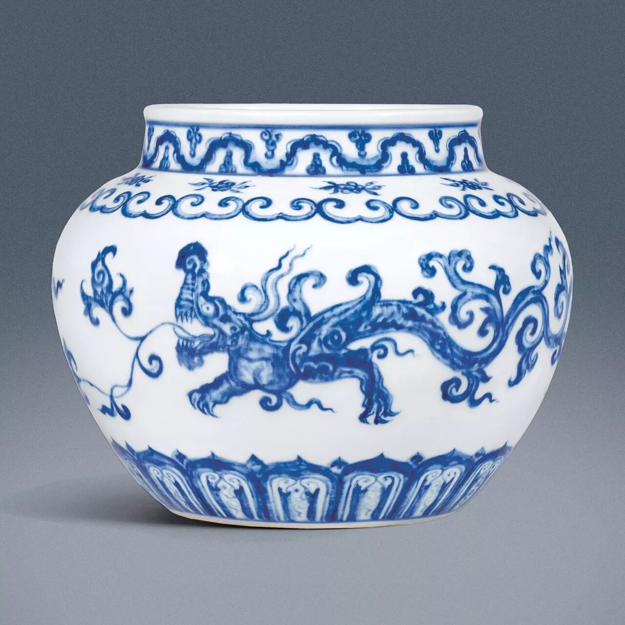 明宣德青花夔龙罐