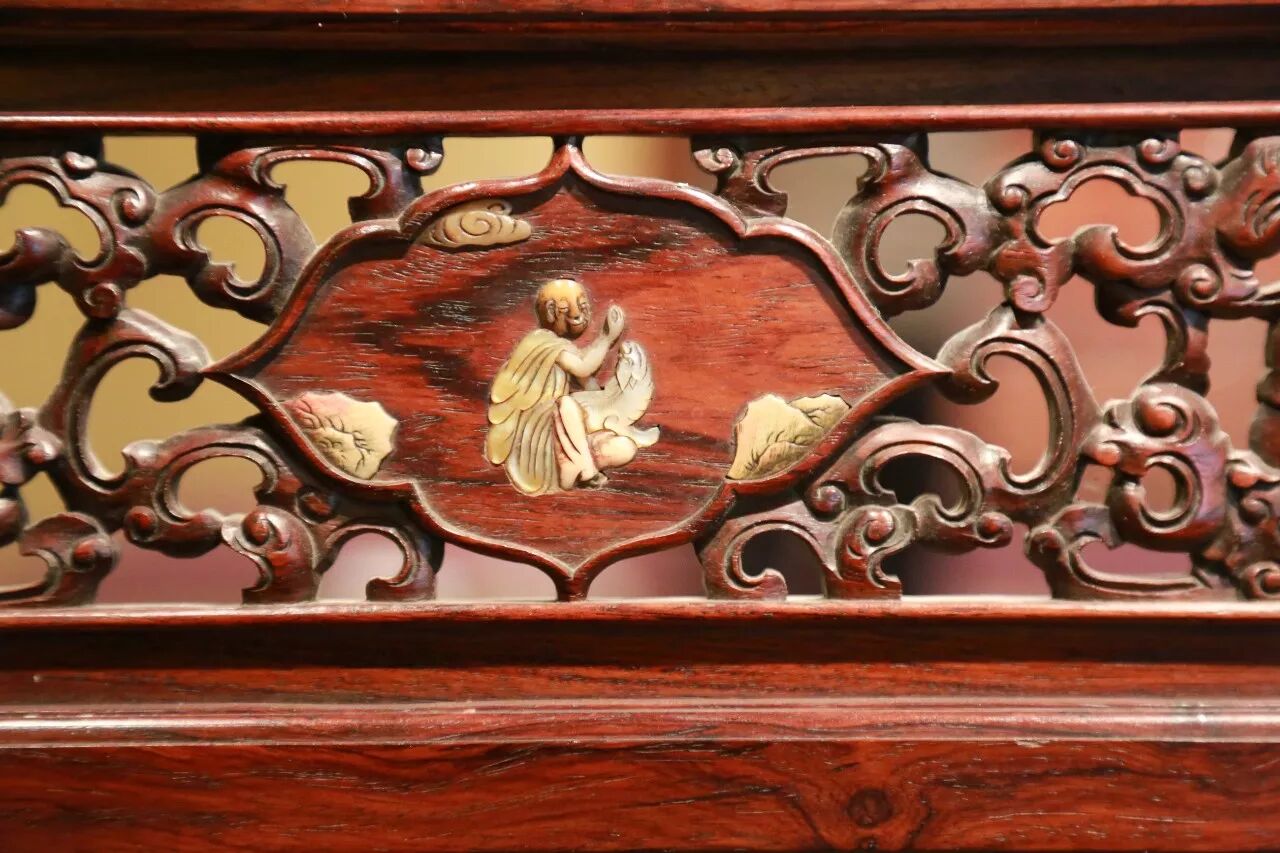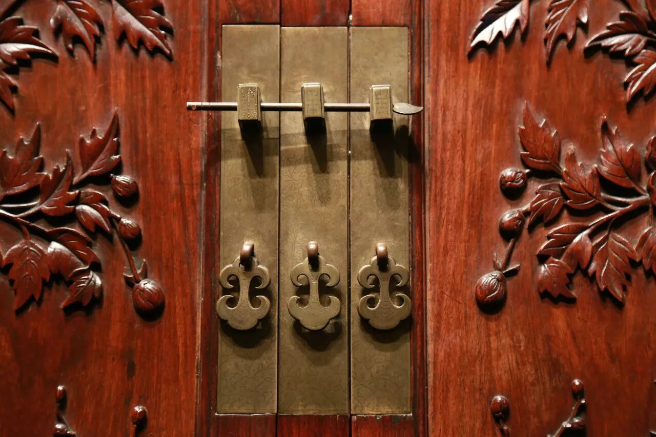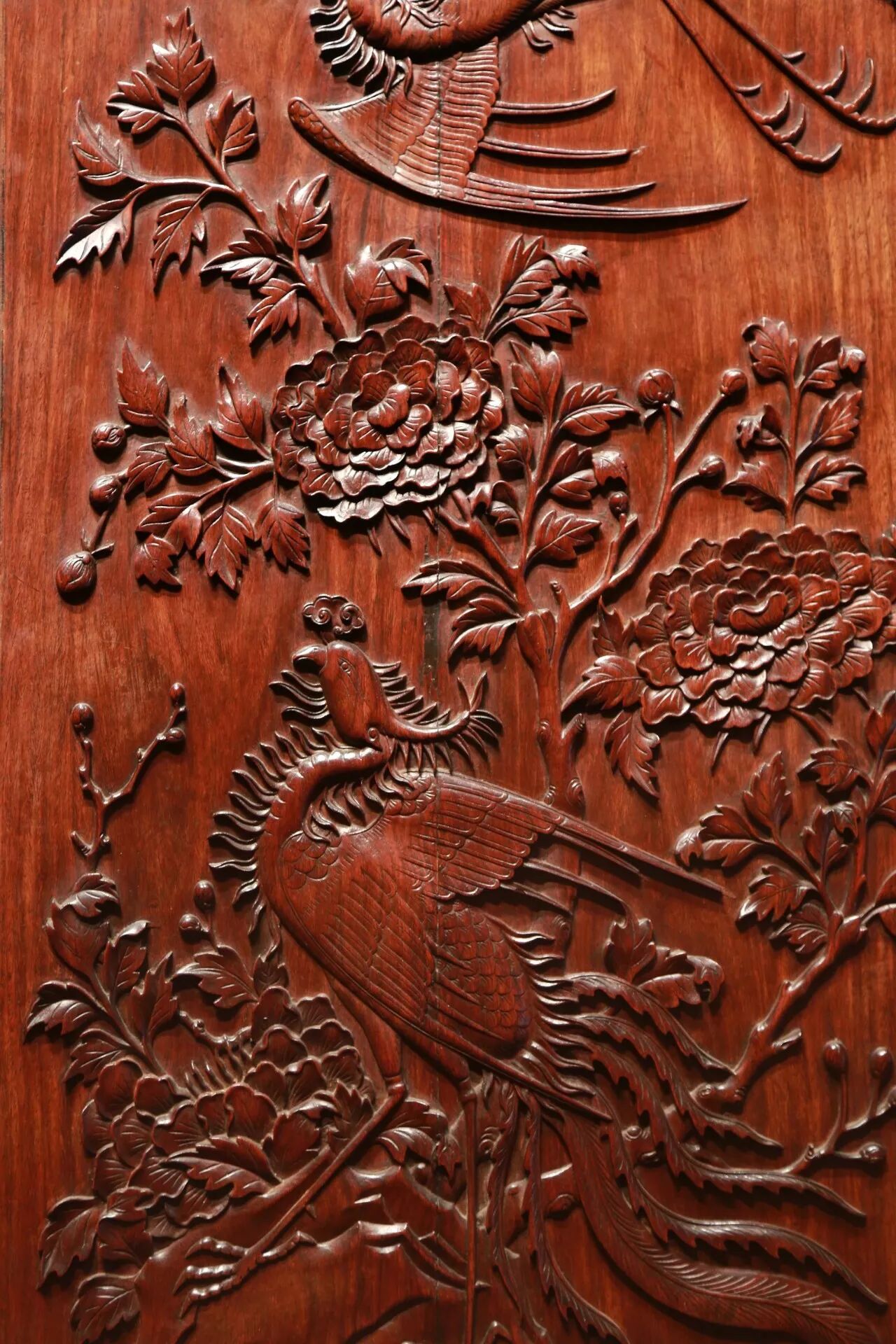 清 康熙御制《黄花梨鸾凤牡丹纹大顶箱柜》局部