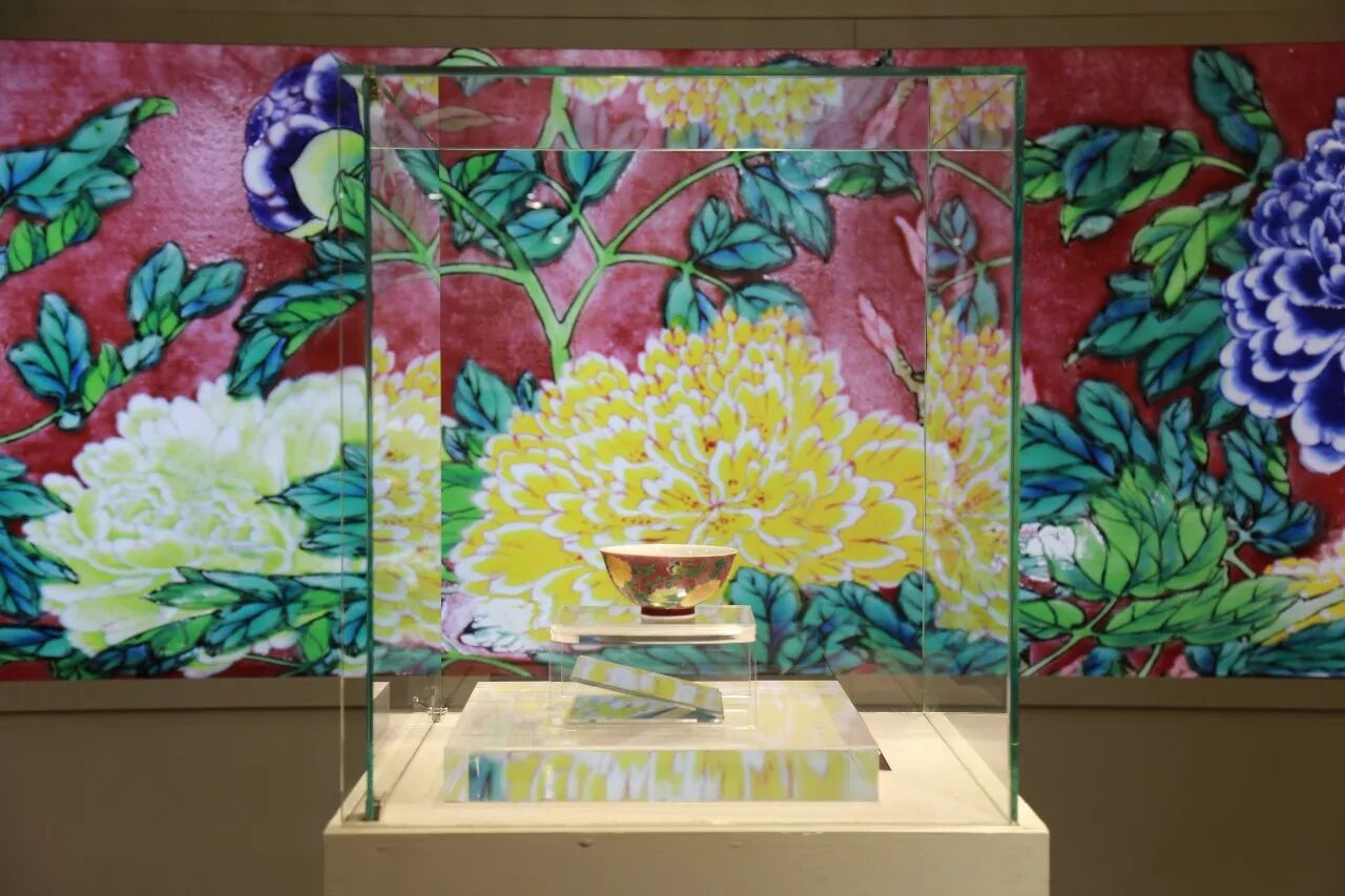清康熙 御制珐琅彩胭脂紫地牡丹碗(局部)