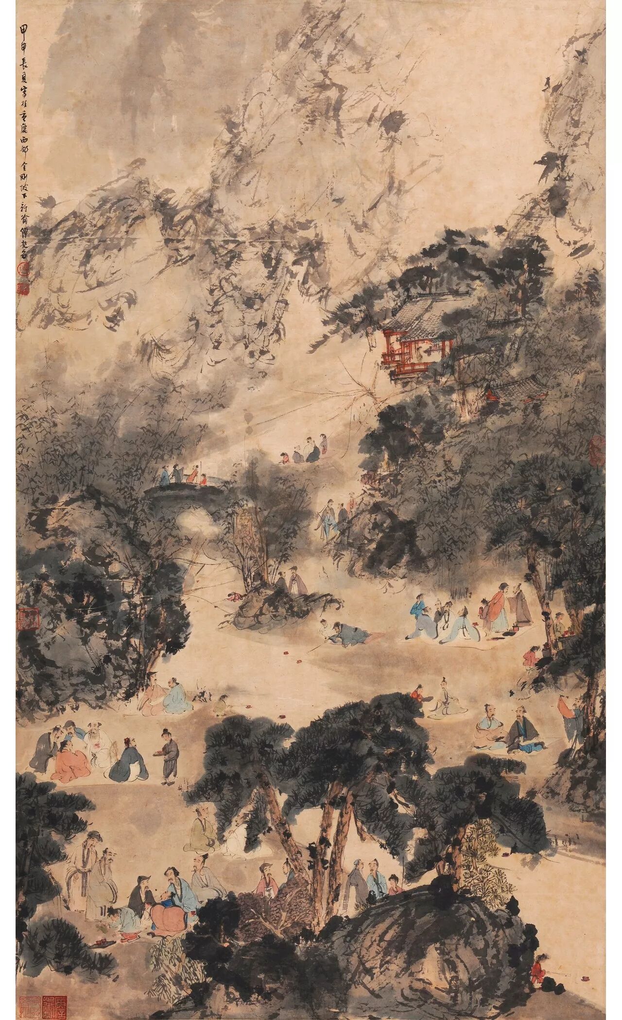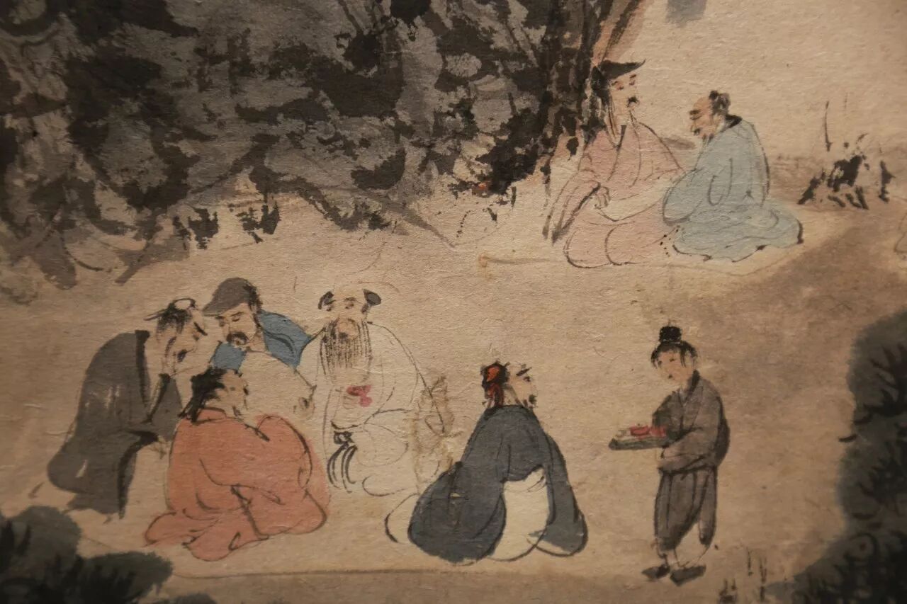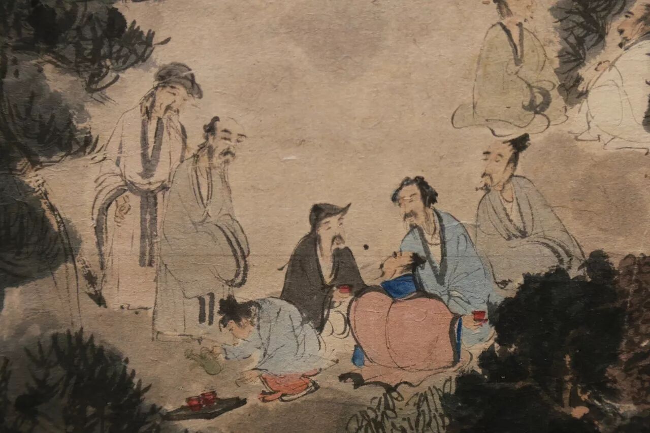 “兰亭”一聚,成为了中国文人心中永恒的圣地和港湾。这一题材,也成为了傅抱石先生在同样动荡的时代,陋居重庆一隅时心中的一处寄托。 王右军酒后书出千古诗篇《兰亭集序》,“往往醉后”的傅抱石也在千百年后,1944年的夏日画出了这张令人叹为观止的《兰亭雅集图》。