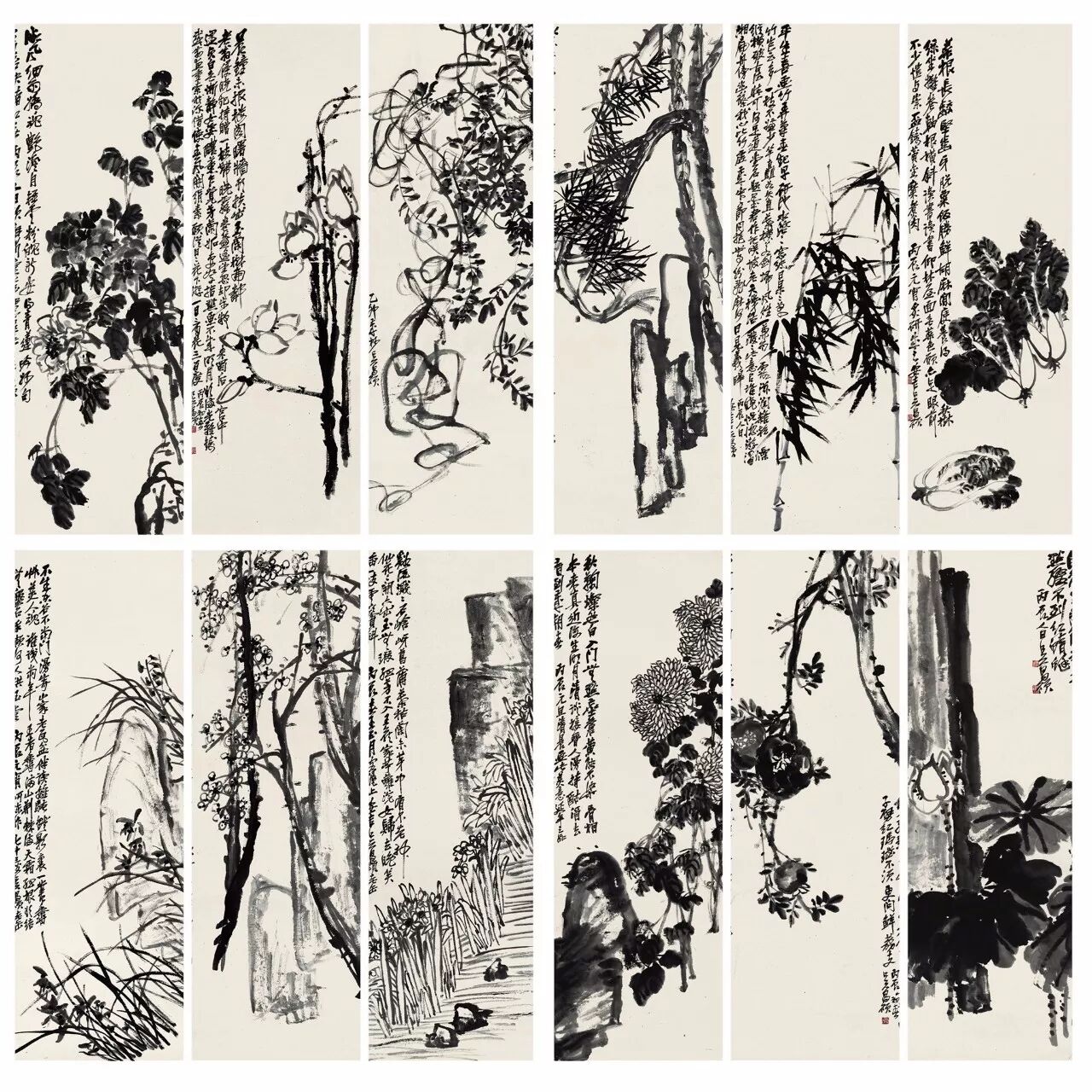 同时推出齐白石最为推崇的画家——吴昌硕一生中最重要的扛鼎巨制《花卉十二屏》,属吴昌硕存世总体尺幅最大的绘画作品,十二屏是极为罕见的题材,无论官方收藏机构还是私人收藏均未见与其相近规模的作品,应为吴昌硕日本友人特殊定制,此作曾在2004年以1650万元成交价创吴昌硕书画作品最高拍卖成交纪录。