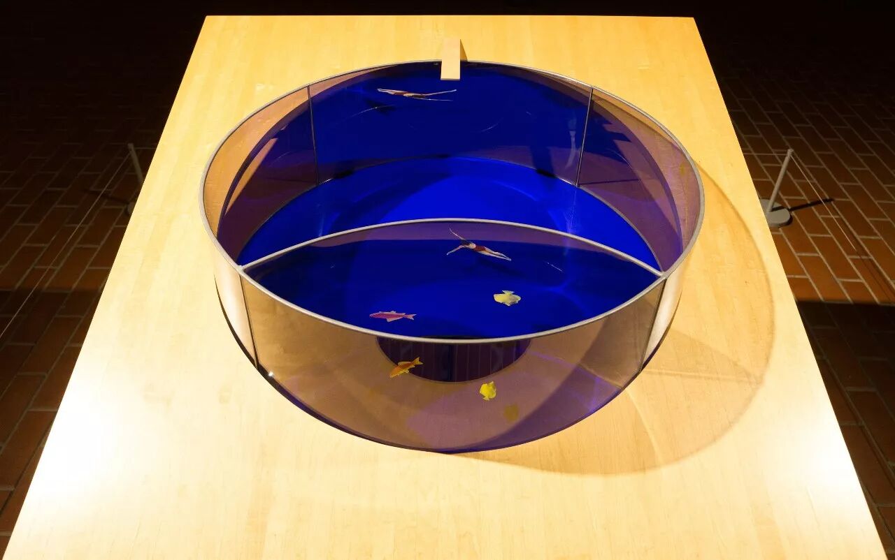 《游泳池 / 鱼池模型》,双向镜、铝、亚克力板、贴花,1997 © 红砖美术馆