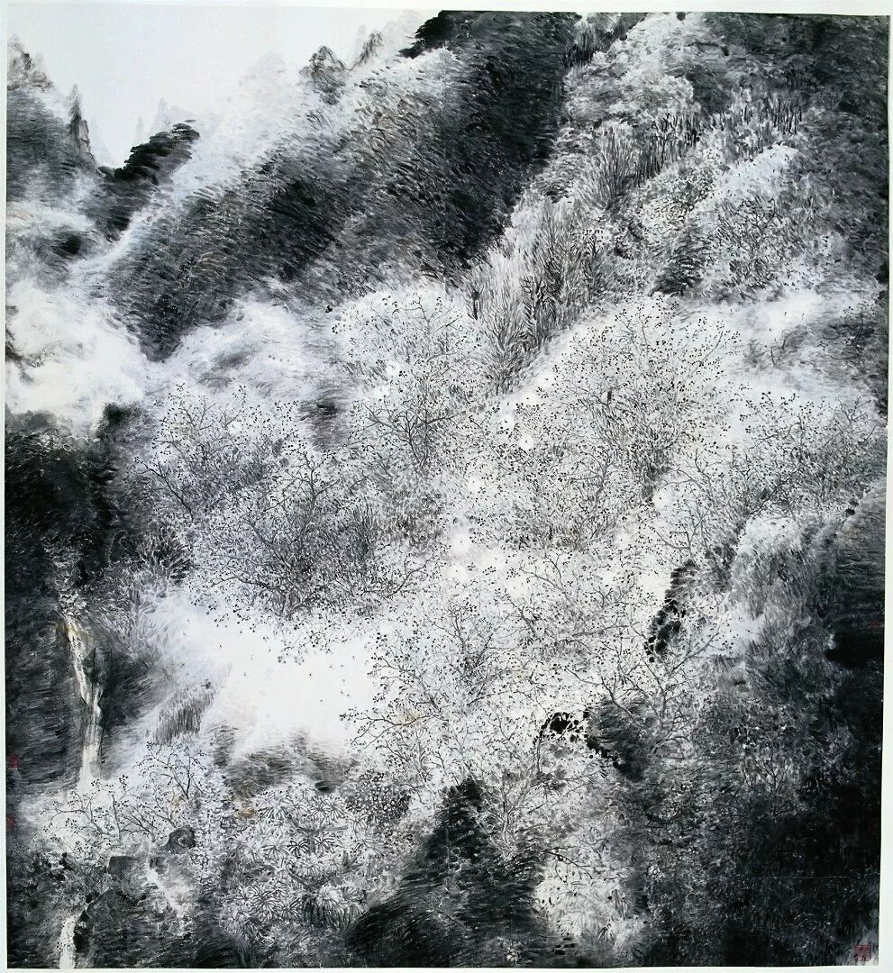 李劲堃《淡淡花雨扑面来》国画,1987