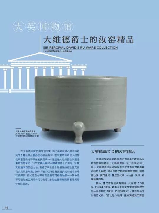 在大英博物馆95号陈列厅里,历代美瓷在精心调试的灯光下含蓄地释放着亦奂亦美的釉彩,空气里不时响起人们压低声音后仍掩饰不住的赞美声……这便是大维德爵士收藏馆里每日的常态。对于了解并喜好中国瓷器的人们来说,这里无疑是学习朝圣之地,囊括了享誉整个陶瓷界的标准器元青花云龙纹象耳瓶、2014年创下2.8亿港元拍卖纪录的斗彩鸡缸杯同款、各式造型却只有在皇宫可见的黄釉器……其中绝不可错过的当属几件可与北京、台北故宫博物院齐名媲美的罕有汝窑器。