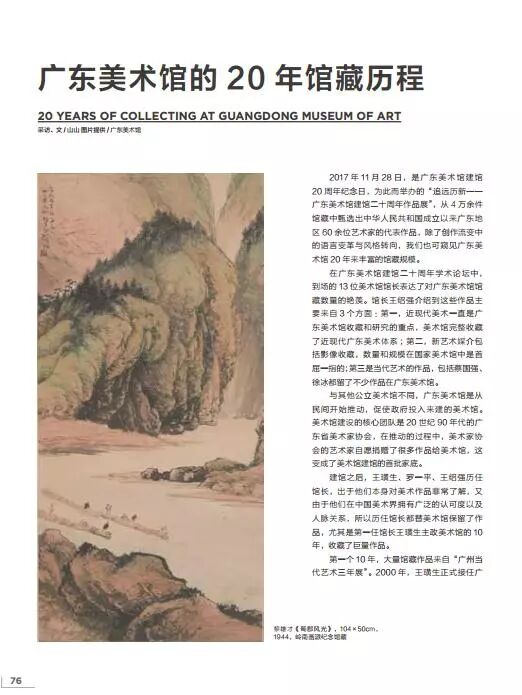 2017 年 11 月 28 日,是广东美术馆建馆20 周年纪念日,为此而举办的“追远历新——广东美术馆建馆二十周年作品展”,从 4 万余件馆藏中甄选出中华人民共和国成立以来广东地区 60 余位艺术家的代表作品,除了创作流变中的语言变革与风格转向,我们也可窥见广东美术馆 20 年来丰富的馆藏规模。