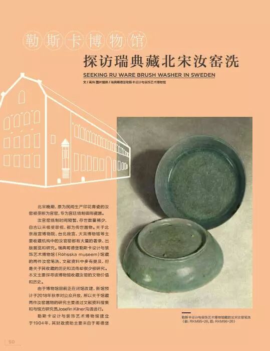 博物馆收藏的两件汝窑是1926年在瑞典的Bukoskis拍卖行中购得的。Bukowskis拍卖行是北欧最大的拍卖行之一,曾经拍卖过很多重要的北欧和亚洲艺术品。这对汝窑笔洗之前由Klas Fåhraeus(1863-1944)收藏。Fåhraeus生于瑞典哥德堡,是瑞典著名的艺术评论家和收藏家,早年也曾去过中国,收藏有大量的艺术品。受1920年年初欧洲金融危机的影响,他不得不变卖收藏的艺术品以解决公司的财政赤字,其中部分藏品被博物馆收藏,部分通过拍卖流通至国际市场。因为馆方在1926年购买汝窑时认定其为韩国18世纪的瓷器,并在长时间内都标注为韩国青瓷,致使其在早期并没有受到重视。直到1952年,瑞典宋瓷学者Nils Palmgren才对这两件藏品的艺术价值、烧造工艺等方面进行了较为详细的比较研究,也逐渐引起了专家学者和藏家的重视。
