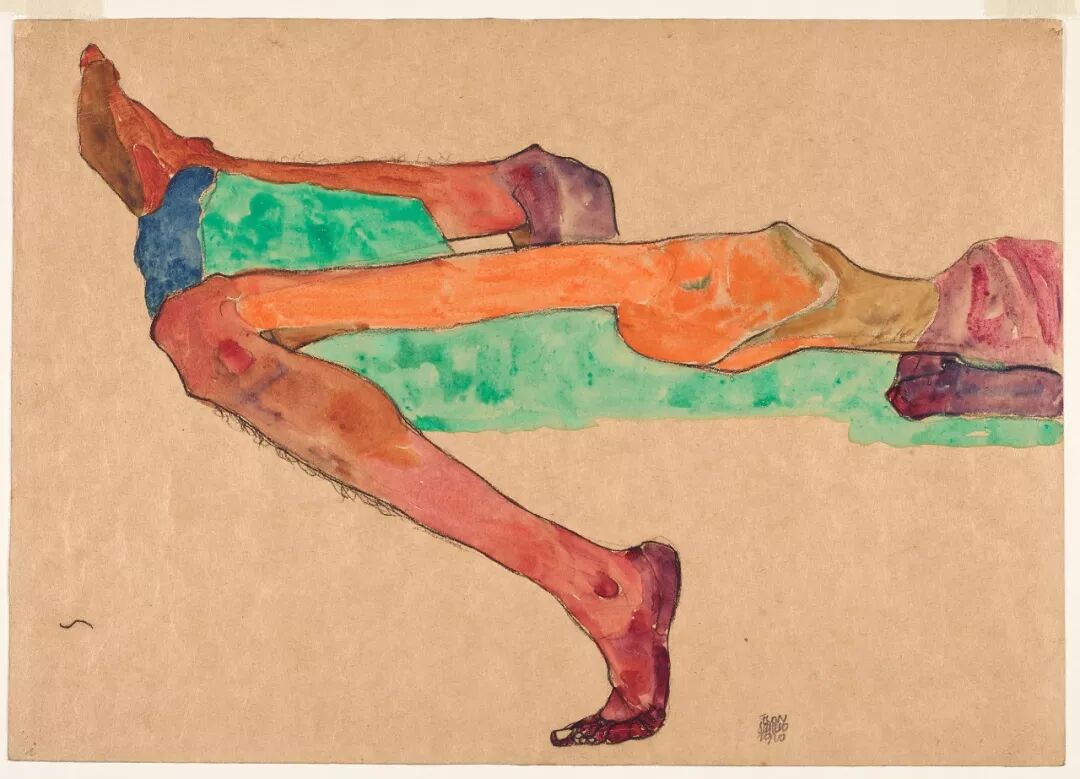 Egon Schiele 《Self Portrait (Reclining Male Nude)》(1910) (私人收藏)