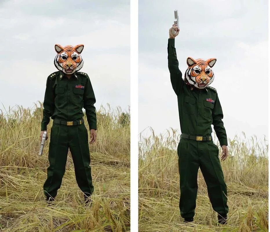 《Bo/Kyar/Thanat (Captain/Tiger/Gun)》,(2018),Moe Satt。图片由艺术家提供