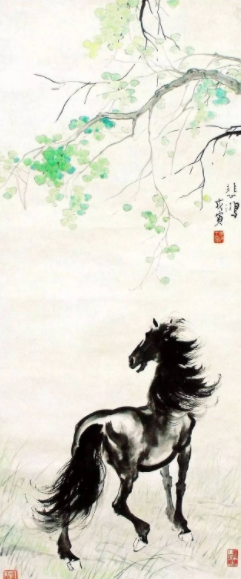 有时对着另一幅徐悲鸿,他又说:“所向无空阔,真堪托死生。着实好。”“所向无空阔,真堪托死生”——杜甫《房兵曹胡马》中的这两句,极其传神而人马不分,感情深挚,倒是令我心服口服。我也特别喜欢马,但不喜欢徐悲鸿的画,觉得他画得“破破烂烂的”(我曾当着爸爸的面这样说过一次,马上被他“逐出”书房),而人家杜甫的诗虽然也色调深暗,但是写得工整精丽,我因此曾经腹诽父亲褒贬不当;后来听多了他的以杜赞徐,又想:他这“着实好”,到底是在赞谁?好像还是赞杜甫更多。