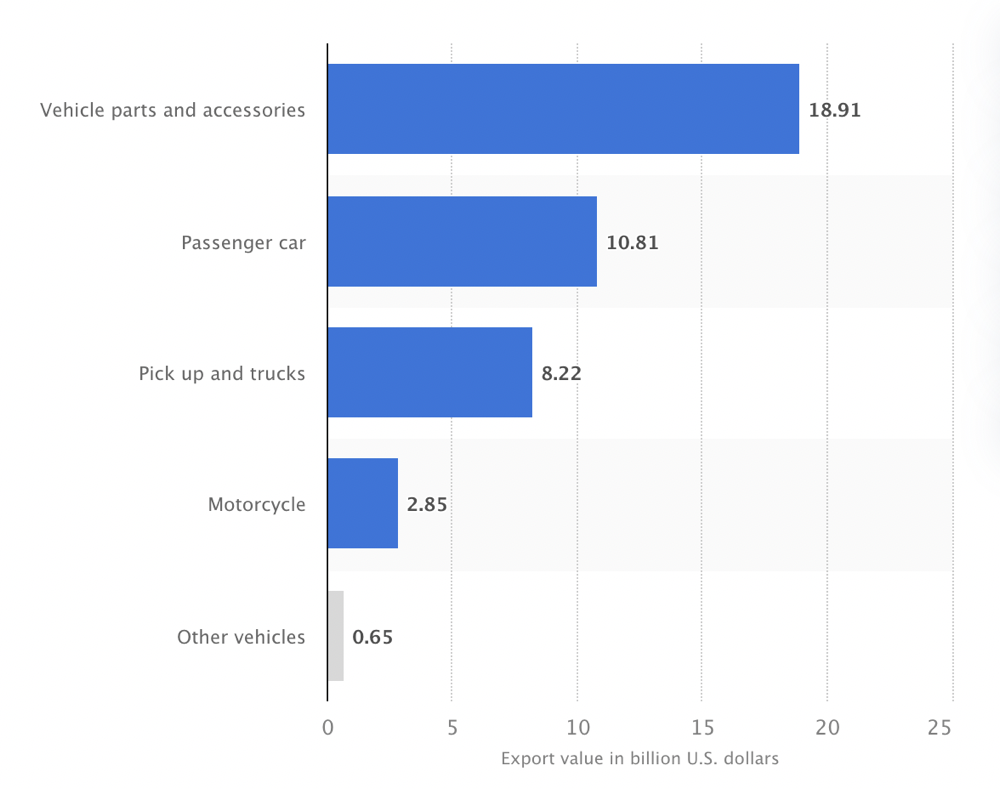 ▲泰国汽车产品出口额构成(单位:十亿美元)