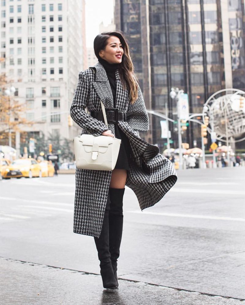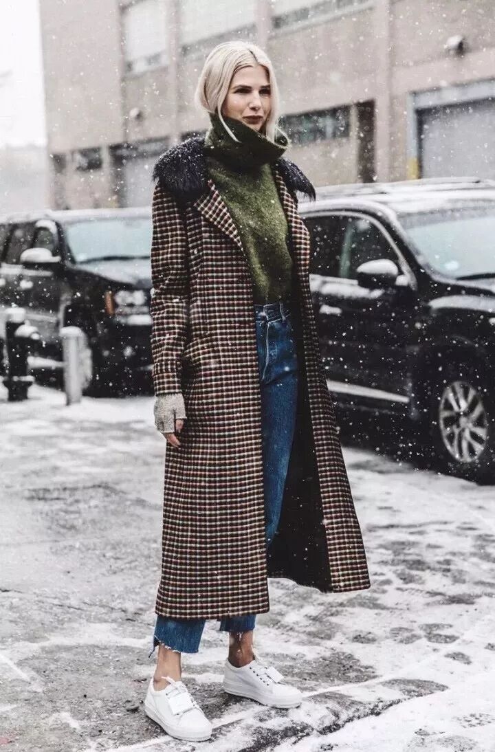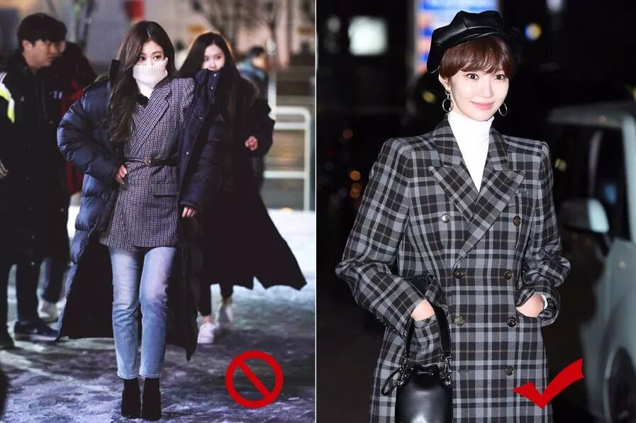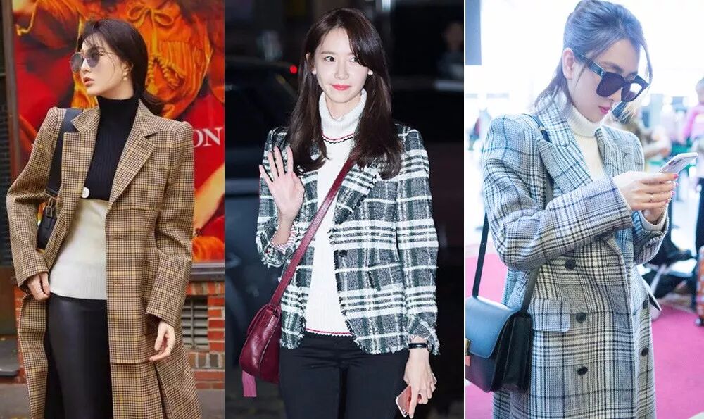 其二,有没发现小花们最近超爱拿格纹大衣配高领毛衣,简直配一脸啊啊啊。