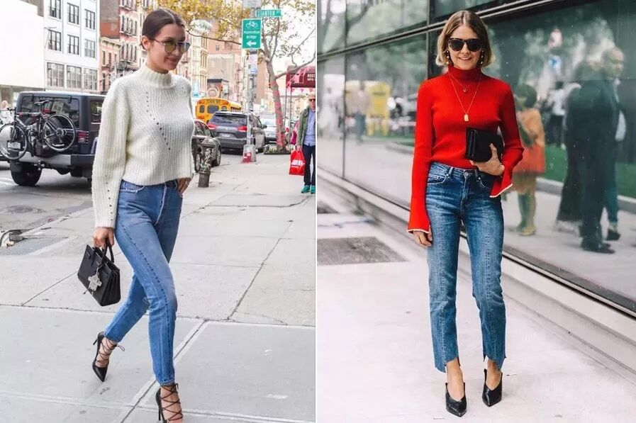 姐觉着吧,就拿高领毛衣+牛仔裤的组合来说,超模们穿经典款有火辣的身材撑,但凡人们务必挑选带些小心思的毛衣或其他单品,让全身火辣辣。
