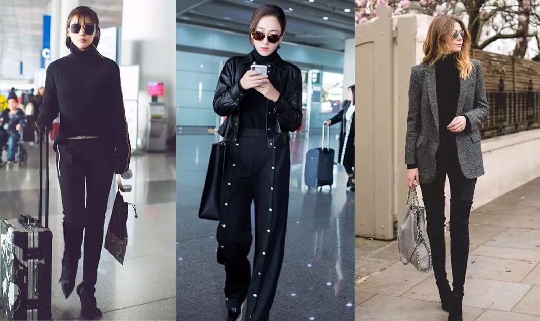 高领毛衣和发型也大有关系,姐完全不介意你把头发披下,捋进毛衣,但前提是,别把黑发藏进黑毛衣,适当的露肤会让你看起来不那么局促。so,穿黑色高领毛衣的时候,记得露出脖颈曲线,黑发姑娘尽量把头发梳起。