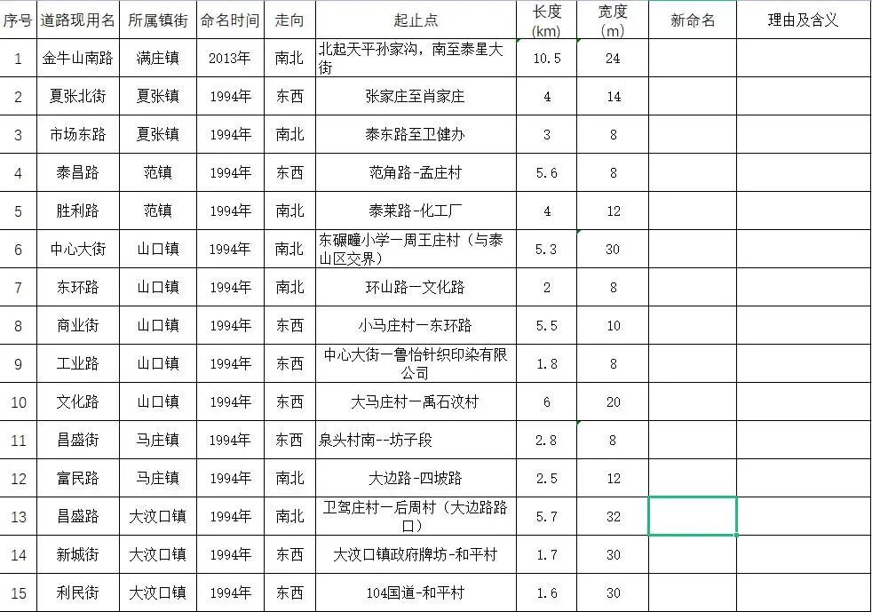 需更名道路情况一览表