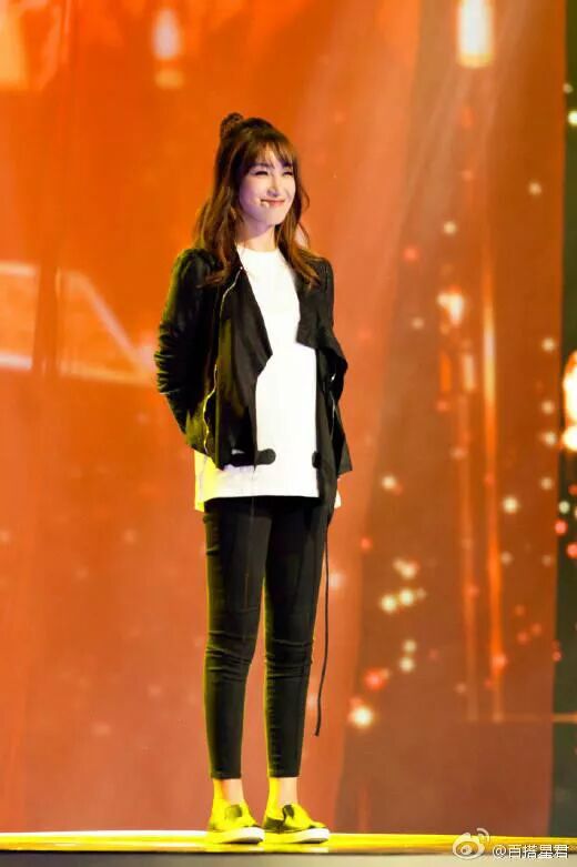 参加《跨界歌王》的造型:半丸子头+皮衣+九分紧身裤+板鞋,很少女了▼▼▼