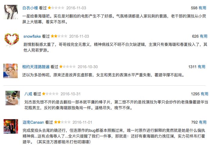但电影虽然扑街,评论里却全是给秦海璐点赞的▼▼▼