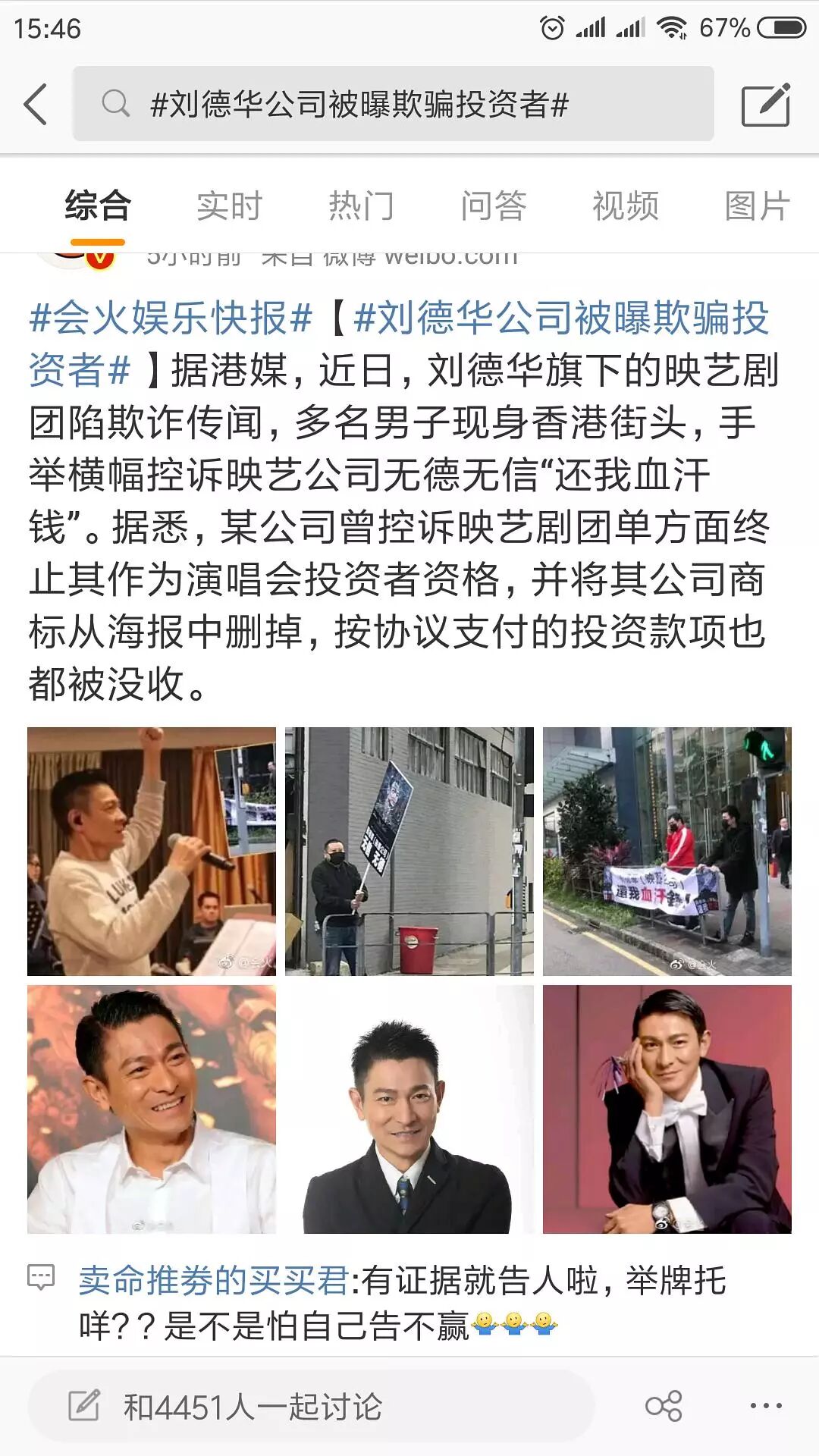 演唱会前夕,香港街头有多名男子举着“刘德华(映艺公司)无信无德”的牌子,微博上也有很多人转发、关注了▼▼▼