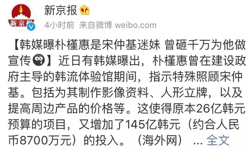 当然最大的瓜,还是怀疑朴槿惠动用国家资金推宋仲基。